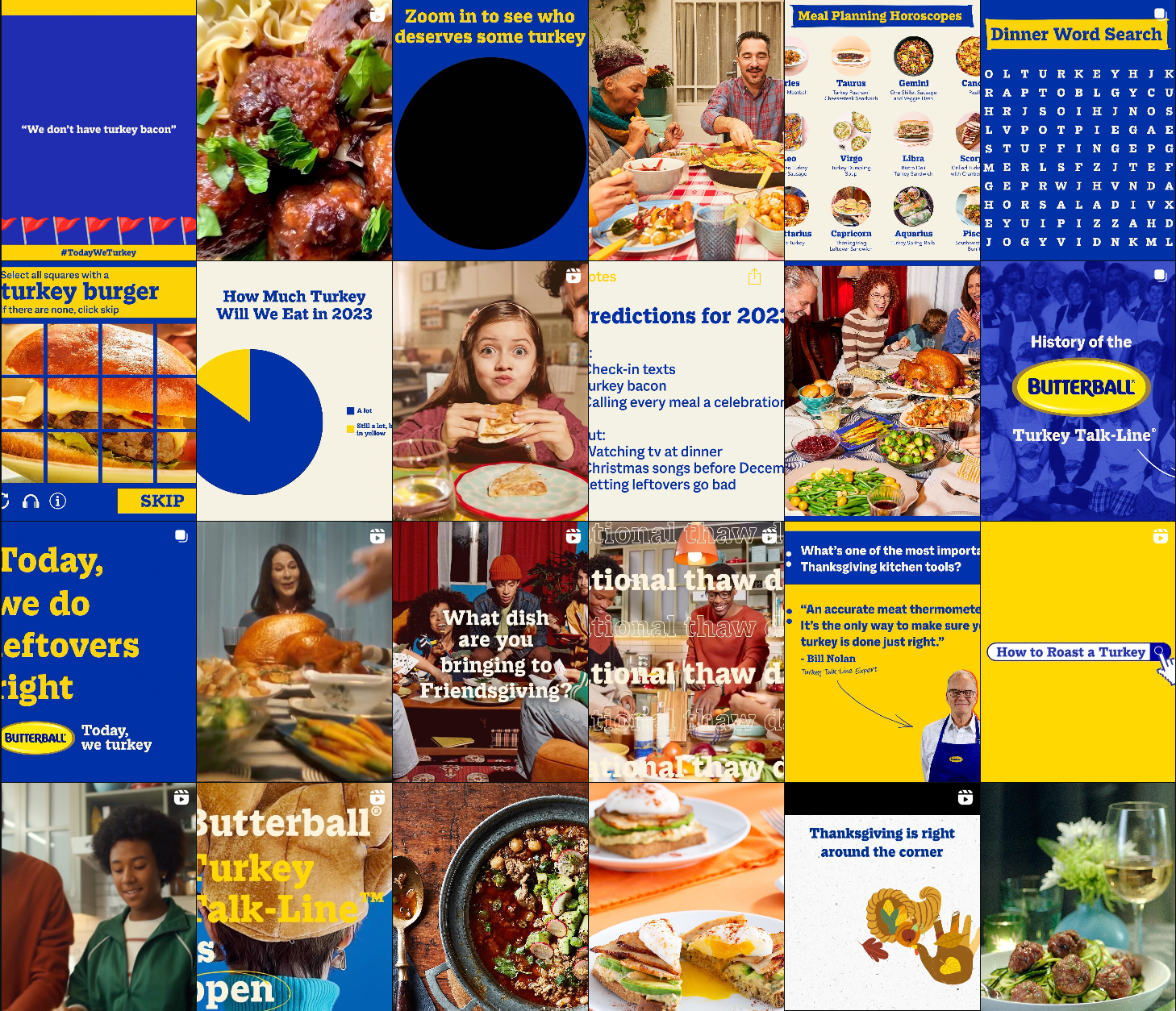 Gone were the soft, pastel tones of the past. In their place: bolder color blocking, stronger typography, and a more graphic approach that felt relevant for how people see and engage with brands now. The result was a look that honored Butterball’s legacy while giving it the energy and presence it needs for the present.